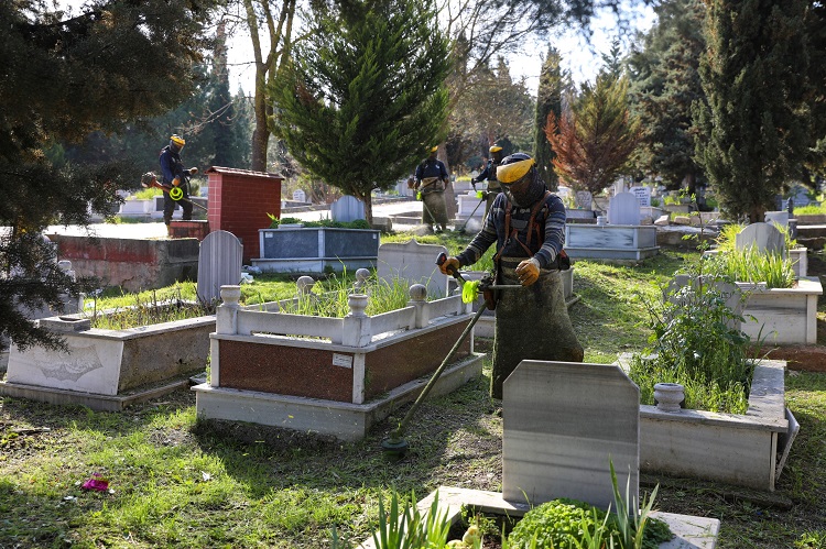 Sağlık İşleri Dairesi Başkanlığı’na bağlı Mezarlıklar Şube Müdürlüğü ekipleri, 13 milyon 670 bin metrekarelik mezarlık alanında yabani ot temizliği, yolların düzenlenmesi, ilaçlanması ve genel bakım işlemlerini özveriyle sürdürüyor. Bunun yanı sıra Pınarbaşı Şehitliği başta olmak üzere tüm şehitliklerde bakım ve temizlik çalışmaları yapılıyor.